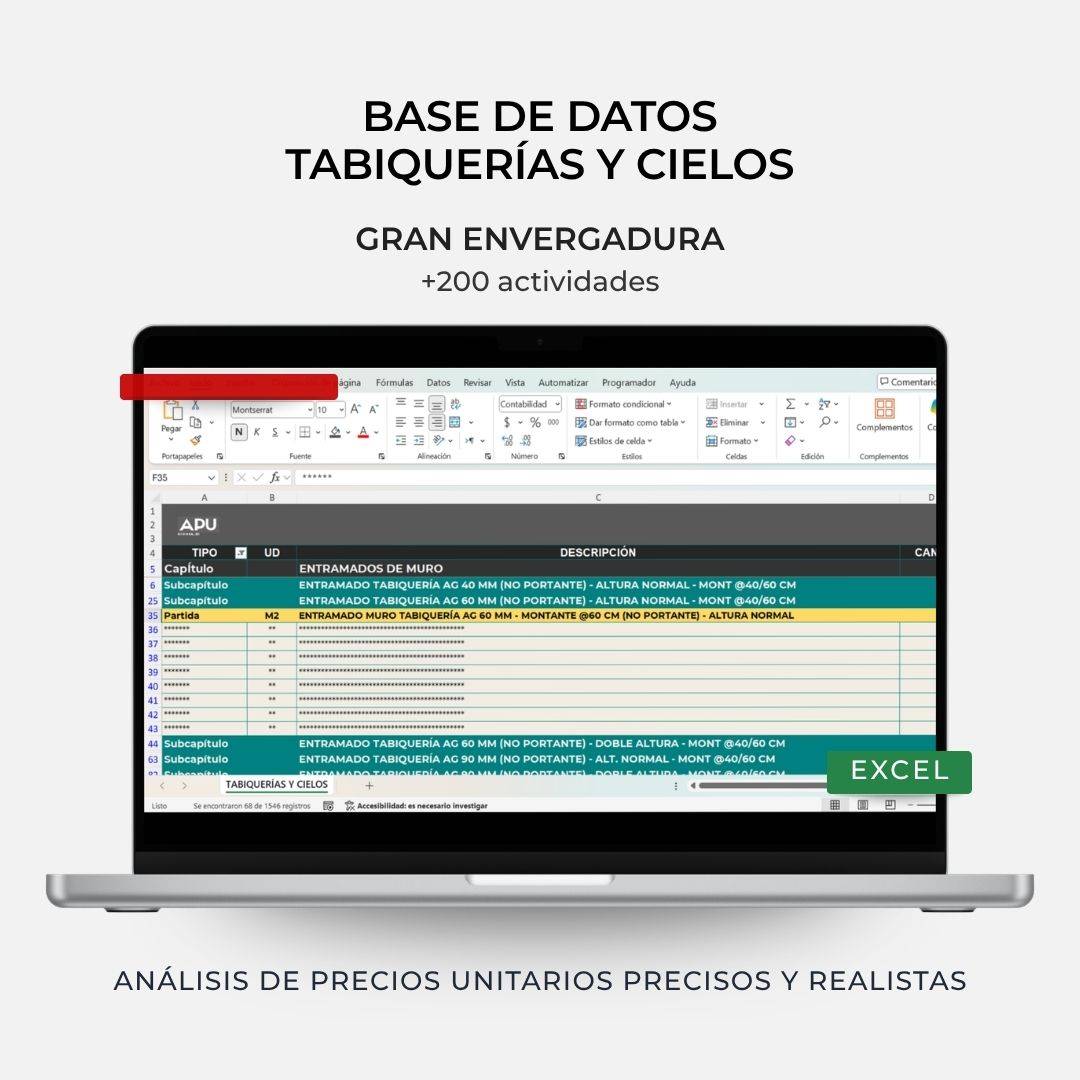 Bases de datos en Excel con análisis de precios unitarios detallados para tus presupuestos.